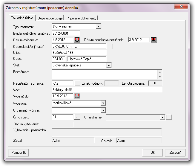 Pripájať do evidencie dokumenty vo forme súborov, napr. PDF, DOC, XLS a podobne.